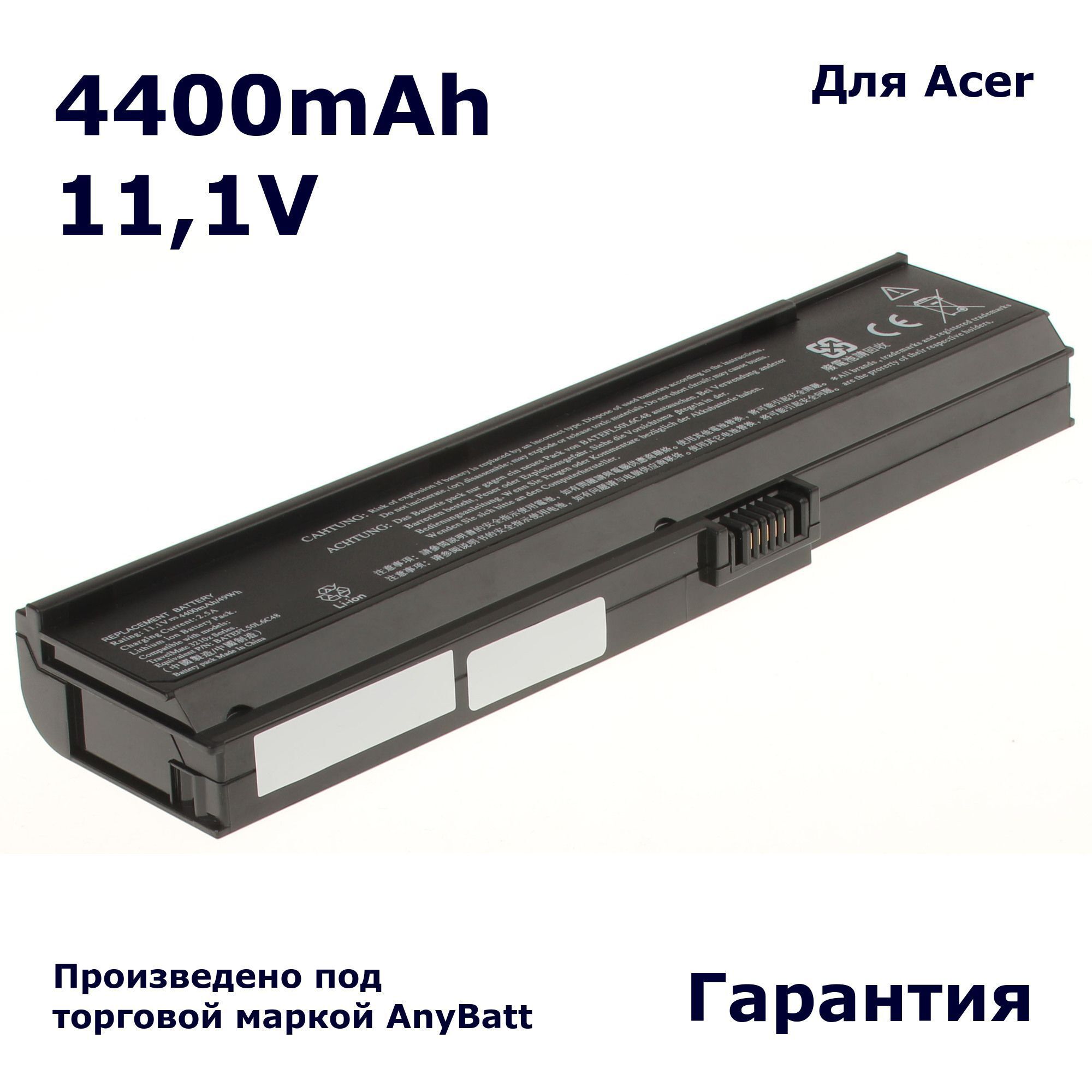 Аккумуляторная батарея 4400 mAh для ноутбука Acer Aspire 3030, 3050, 3200, 3600, 3680, 5030, 5050, 5500, 5570, 5580 серии, TravelMate 2400, 2480, 3210, 3220, 3230, 3260, 3270, 4310, 5500 серии.
