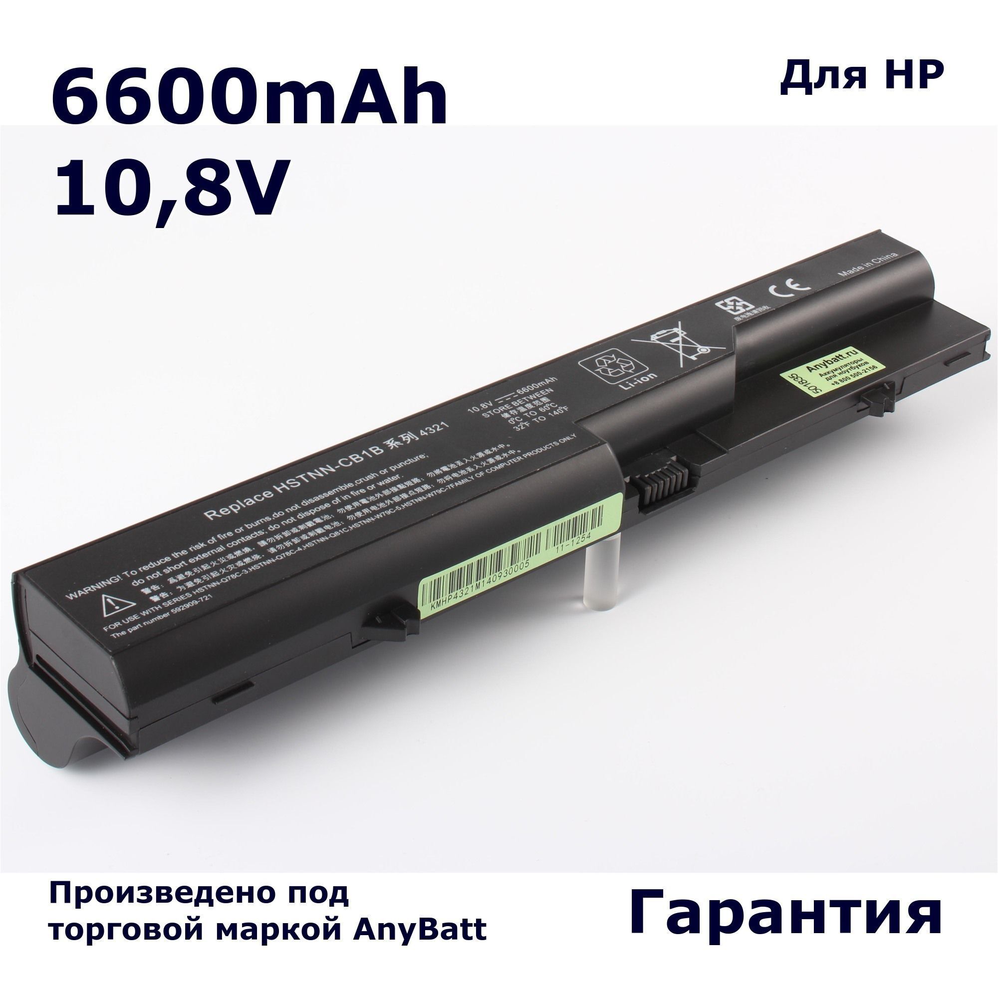 Усиленная аккумуляторная батарея ёмкостью 6600 mAh для ноутбука Compaq 320, 321, 325, 326, 420, 421, 620, 621, HP 420, 421, 425, 620, 625, Mobile Thin Client 4320t, ProBook 4320, 4325, 4420, 4425, 4520, 4525.