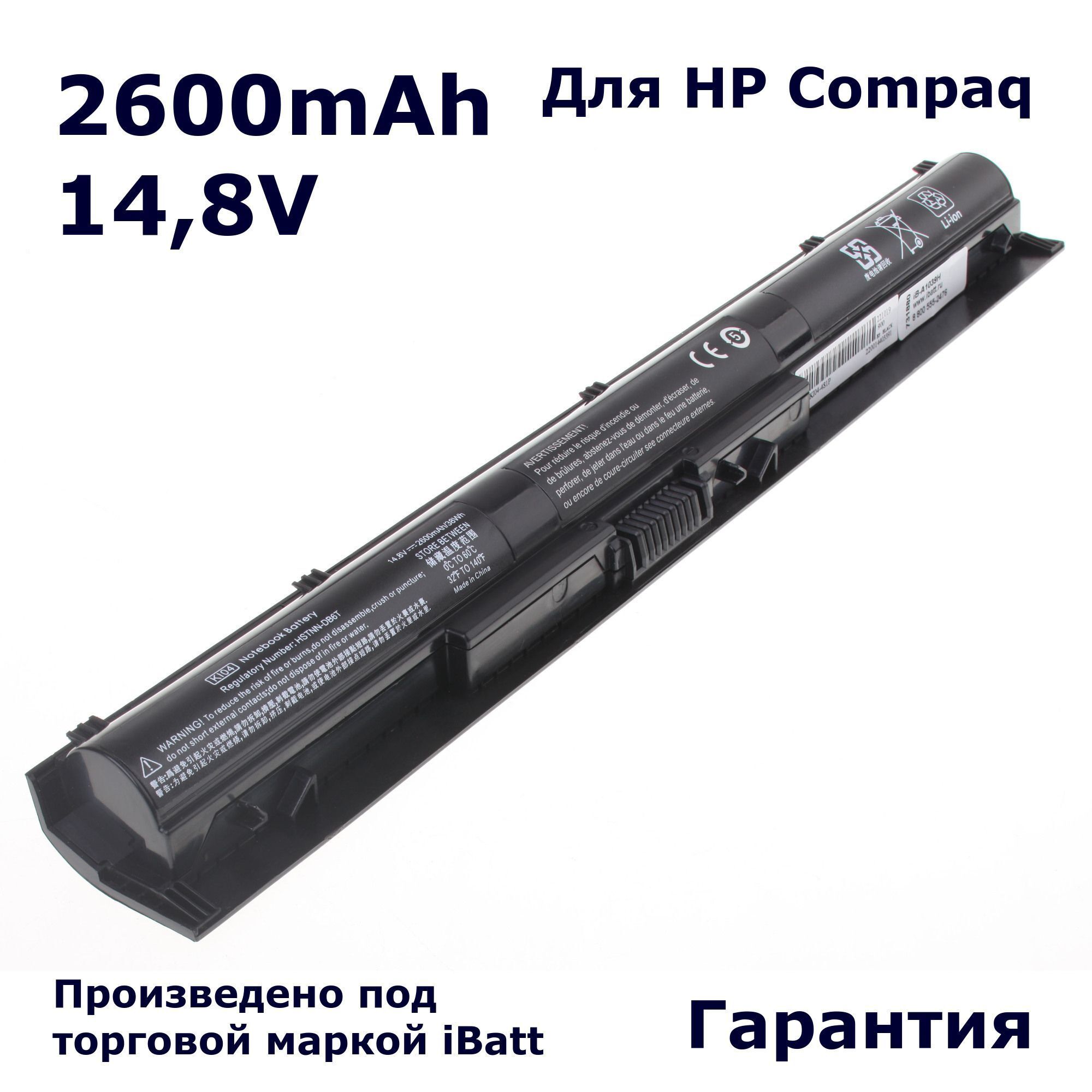 Аккумуляторная батарея ёмкостью 2600mAh для ноутбуков Pavilion 15-ac, 15-ab128ur, 15-ab207ur, 15-ac140ur, 15-ak003ur, 17-g005ur, 17-g109ur, Gaming, PAVILION, KI04, N2L84AA, KIO4.
