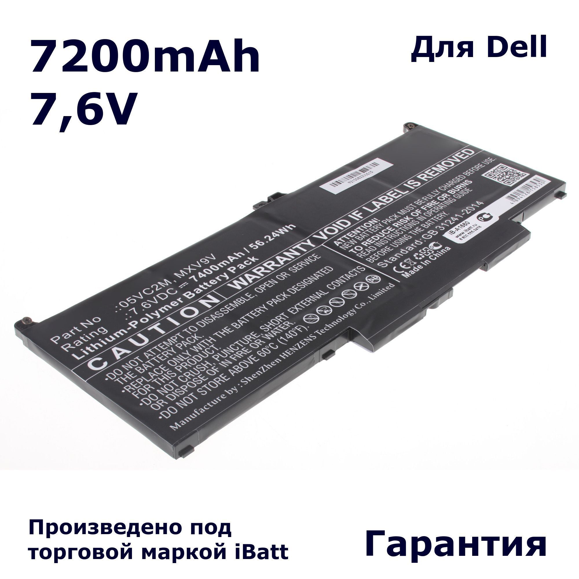 Аккумуляторная батарея 7200mAh для ноутбука Dell Latitude 13 7300, Latitude 14 7400.