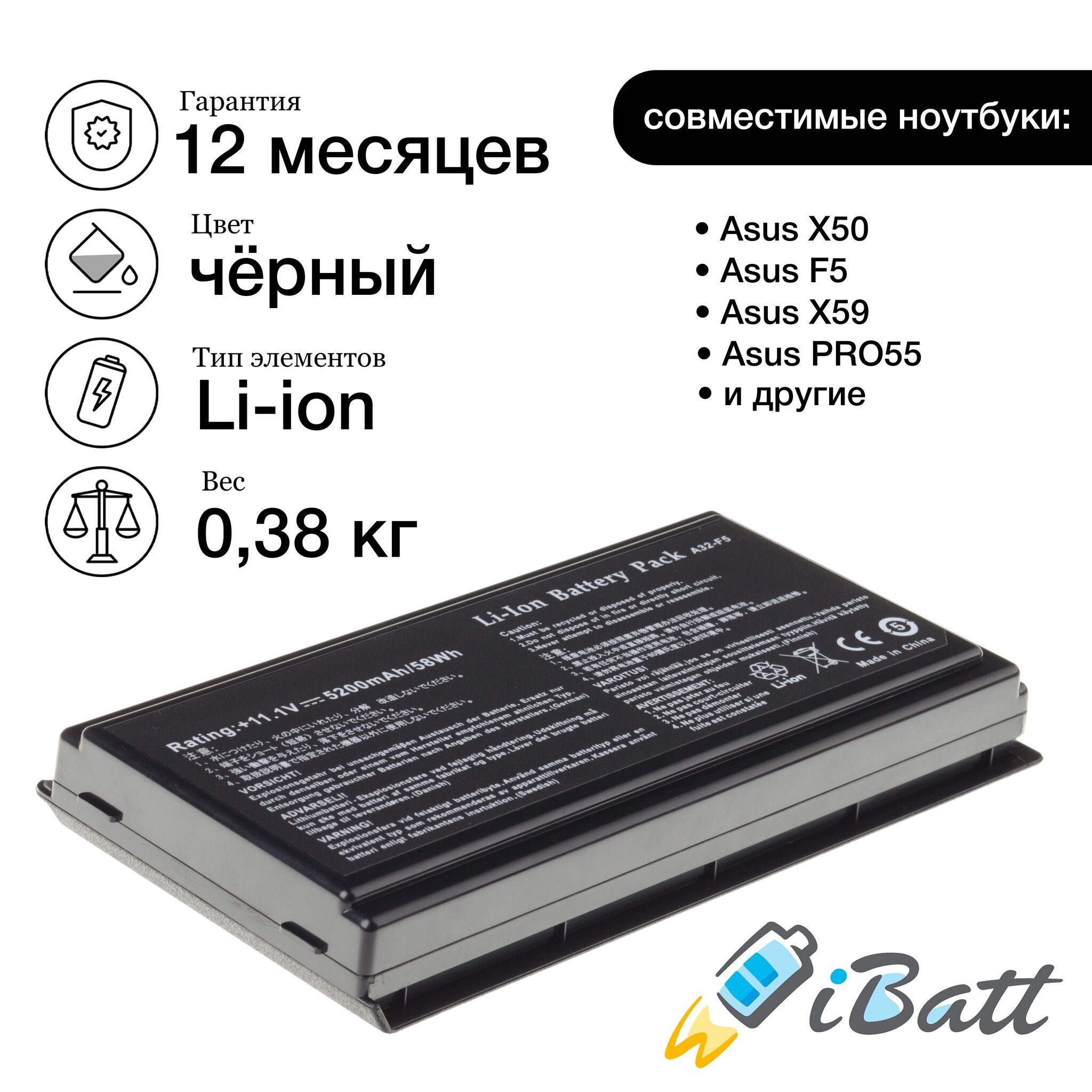 Следует отметить, что аккумуляторная батарея iBatt выпускается известной торговой маркой, что является гарантией качества. К тому же, на данную модель предоставляется гарантия 1 год, что делает ее покупку надежной.